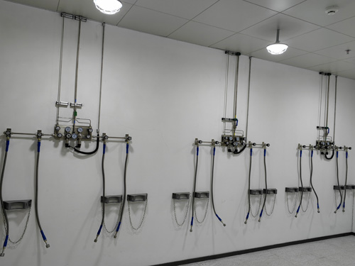 1.氣瓶間內壓力值上下調整板材與測試房間內的氣路終端門店相互間使用的SS316LBA管去對接,給水管內界面晶亮度為Ra<0.4umBA級給水管。